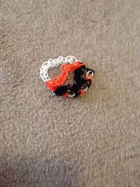 esto es una pulsera de nivel intermediaria, se puede hacer muy fácilmente.Fuentes: 3 colores de bandas en telar, telar del arco iris y un gancho.Paso 1: Empezar por colocar dos bandas blancas en forma de 'v' en el inicio del telar.Paso 2: El lugar un