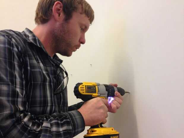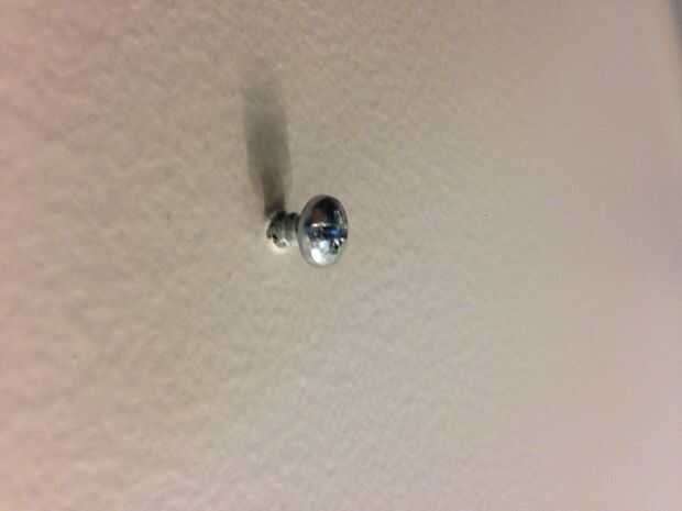 Utilizando técnicas de practica aquí clavo en los dispositivos de suspensión o está utilizando los clavos. Coloque uno en cada marca que hecha. Tenga cuidado de cualquier marca que puede ser visible. Tratar de conseguir una ligera inclinación en el clavo para asegurarse de que mantiene las piezas en la pared.