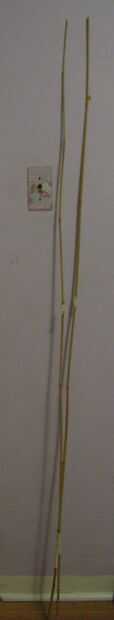 compré Este bambú de un centro local de la casa / tienda de hardware. Es barata y flexible. Para una ventana pequeña, funciona bastante bien. En el verano, usarlos como cañas de pescar baratas.