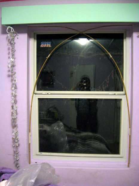 Doblar y colocar las varillas de bambú de dos dentro de la abertura de la ventana.