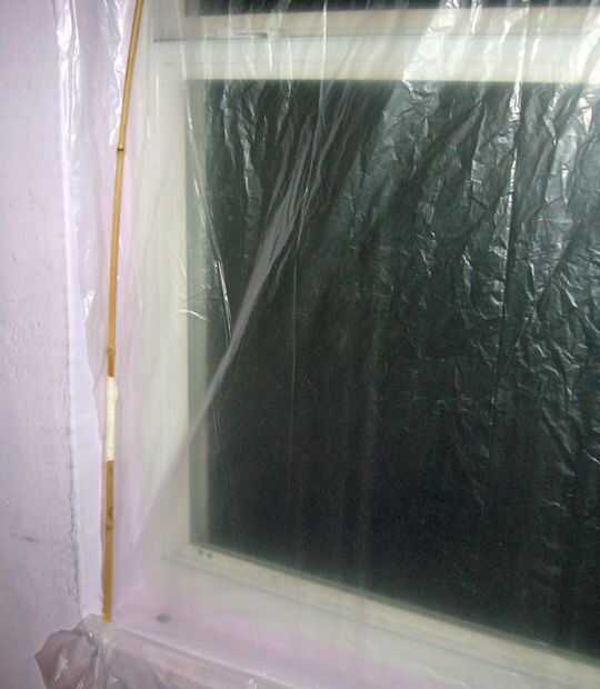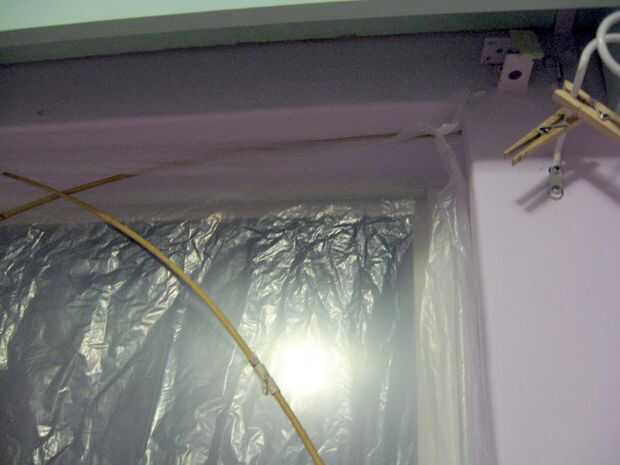 Tire hacia atrás el bambú y luego poner el plástico entre éste y el marco de la ventana. Deje que el bambú vuelva para sostenerla en lugar.
