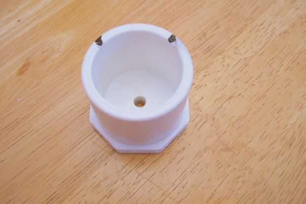 Para crear el soporte cuna medida aproximado 1 1/4" a través de la apertura de la tapa y hacer dos marcas. Esto es donde se harán dos cortes para crear un recorte de distancia de la varilla en la horquilla.