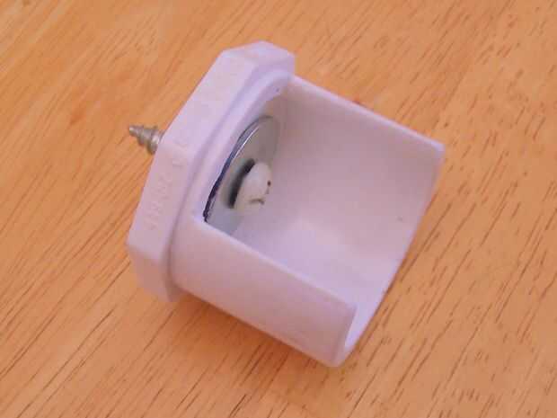 Usar un tornillo lo suficientemente fuerte! Yo recomiendo al menos un tornillo # 10 y en arrendar 1" de largo. Utilice una arandela de defensa para mantener la cabeza del tornillo de tracción a través de la plástica y para repartir la carga sobre la parte inferior entera de la tapa.