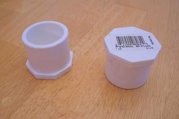 Nota: Este soporte "extremo fijo" fue hecho de una lámina de PVC tapa plana. Tiene una mirada limpia sin la brida faceta en el tapón de PVC. El tapón o la tapa funciona bien para cualquier soporte. Use lo que usted puede encontrar en su ferretería local.