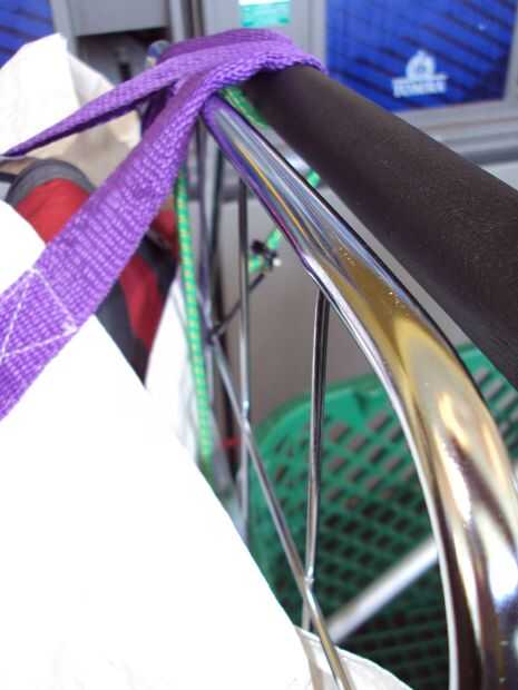 Sexto: opcional. Puedes colgar tus bolsas en la parte superior de su carro con un bungi.