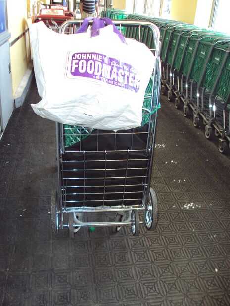 Novena: Conseguir su carro con el trazador de líneas, si tienes uno. Si no, mira que ninguno de sus alimentos se deslizará a través de orificios en la malla de su carrito de paseo Inicio.) Coloque los artículos más pesados en la parte posterior del carro, cerca de usted. Mantenga las cosas pesadas en la parte inferior. Si tus compras son mayores que el espacio en su carro, usar el bungis y bolsas para colgar los elementos más ligeros (pan, tejidos, cereales, etc.) en bolsas fuera de la frente y los lados de su carro.