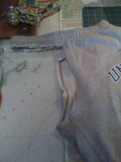 2. mis pantalones tenían bolsillos, así que ésos hacia fuera como cerca de la costura corte como pude. Si la sudoración no tiene bolsillos, fingir que este paso nunca sucedió