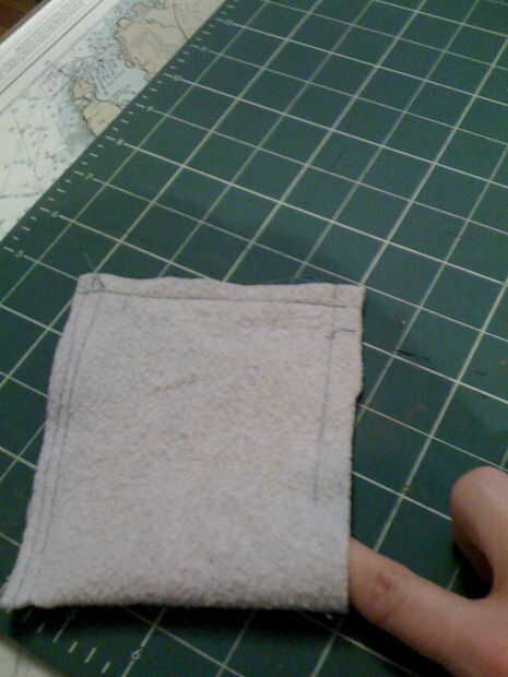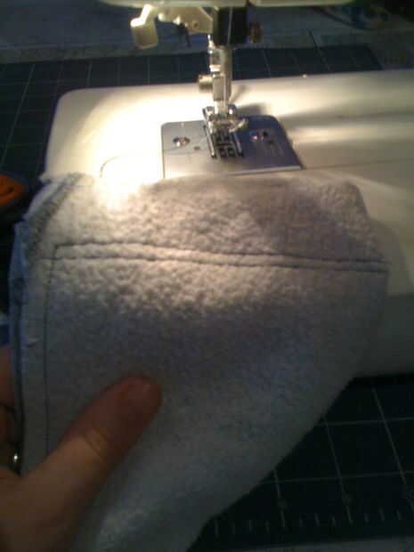 3. toma el rectángulo 4 y cortar un tercio. Este corte por la mitad y coser en dos bolsas para sus calentadores de arranque. Tomar los otros dos tercios y coser para hacer el cuello caliente.