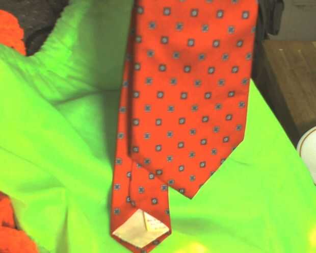 1. una corbata (trate de conseguir uno que se sienta cómodo un lazo de seda es una buena opción también el extremo delgado es todo lo que importa si se mancha la parte delantera de la corbata no importa).