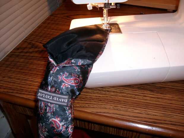 Cierre el extremo ancho de la corbata por coser el forro y la tela hacia atrás Junta.