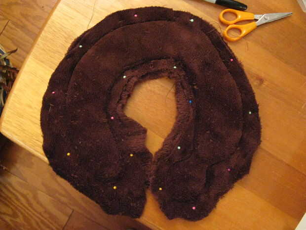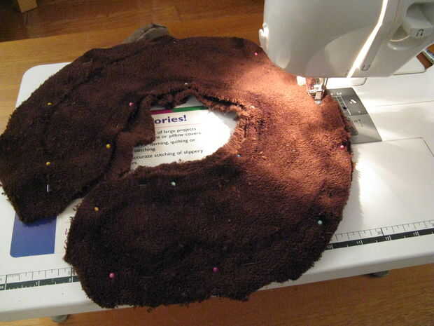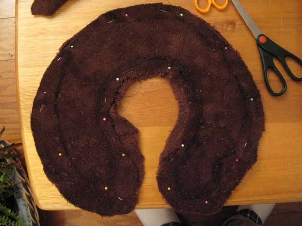 Ahora coserlas juntos! Comience en la parte superior del arco, una pulgada lejos del centro apagado a un lado. No se olvide de volver de la puntada, como esto tendrá cierta tensión en él durante la inversión y el relleno.