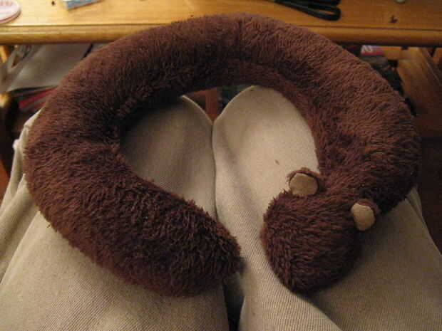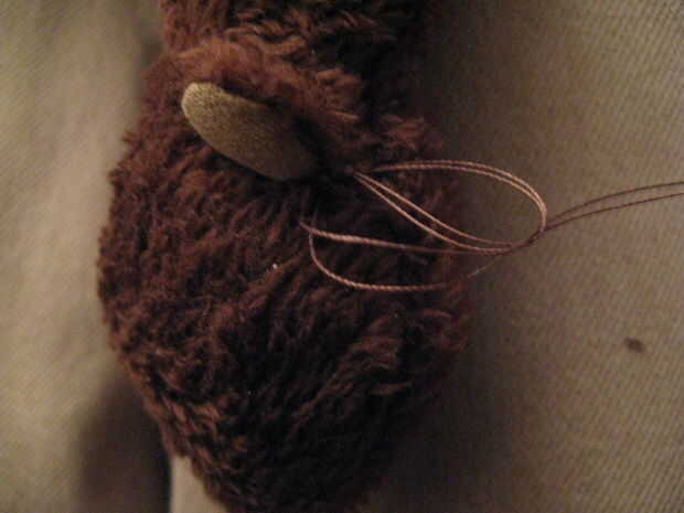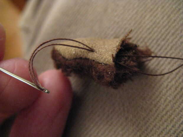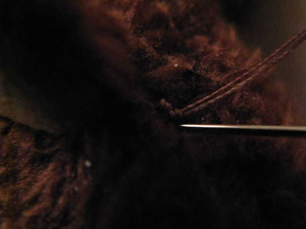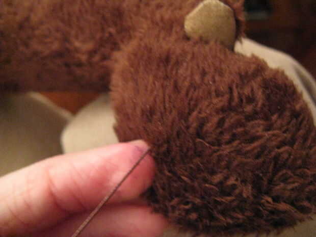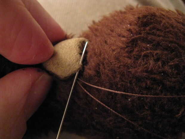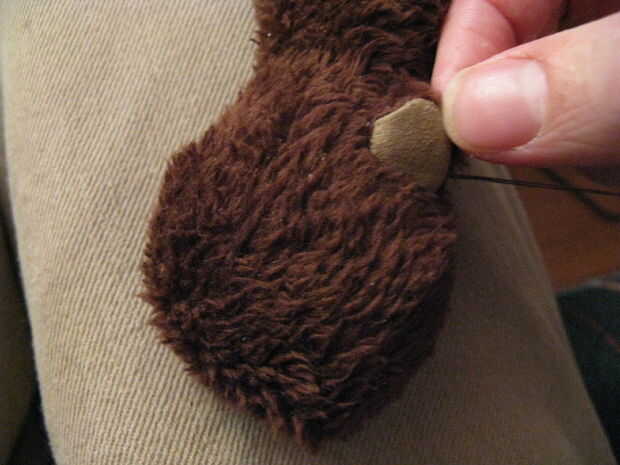 Una vez que el oído está completamente sellado (esencialmente formando una almohada pequeña), posición de la oreja donde usted quiere que sea en la cabeza de la visión. Tomar una pequeña puntada en la cabeza que empieza a fijar la oreja donde usted lo desee. Luego, alternar tomando pequeñas puntadas en la parte inferior de la oreja y la cabeza, va todo el camino alrededor de la oreja (tanto detrás como delante) para conectarlo a la cabeza. Anudar y esconder el hilo.