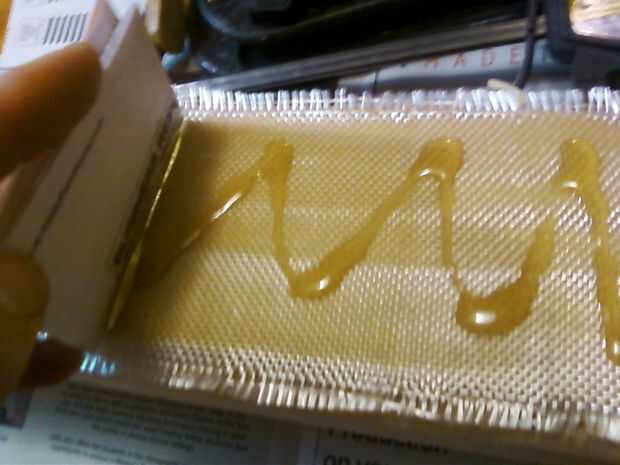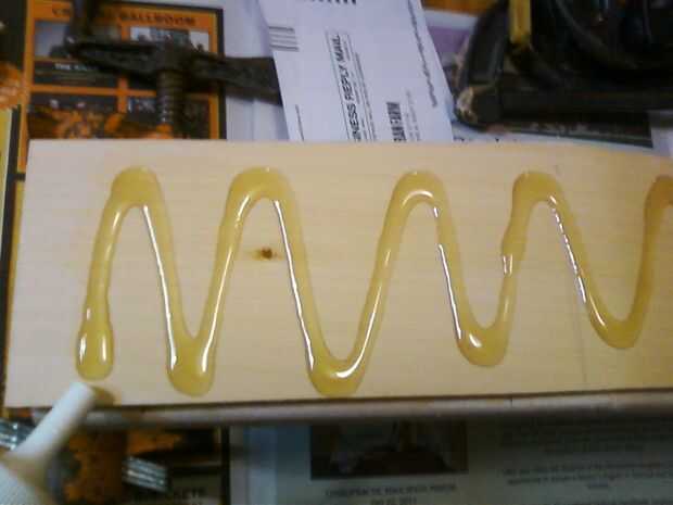 La primera fuga en virase en lugar con una pequeña cantidad de cemento de goma o pegamento blanco. Con una espátula (yo usé un trozo doblado sobre de cartón) Aplique una capa de pegamento del gorila a la primera fuga, limpie la parte inferior de la segunda fuga nuevo con un paño húmedo y junte los dos. Extender una capa de pegamento en la parte superior de la segunda fuga, luego extendió la primera pieza de fibra de vidrio en la parte superior, extrayendo cualquier arruga. Extender otra capa de pegamento gorila sobre el paño. Humedezca la parte inferior de la tercera fuga, luego pone en su lugar y de inmediato empieza separarse de la siguiente capa de pegamento.