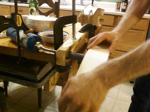 También debe preparar sus lams de madera por adelantado. Lije hasta las caras con papel de grano arena 80 y recoger el polvo con un trapo húmedo.