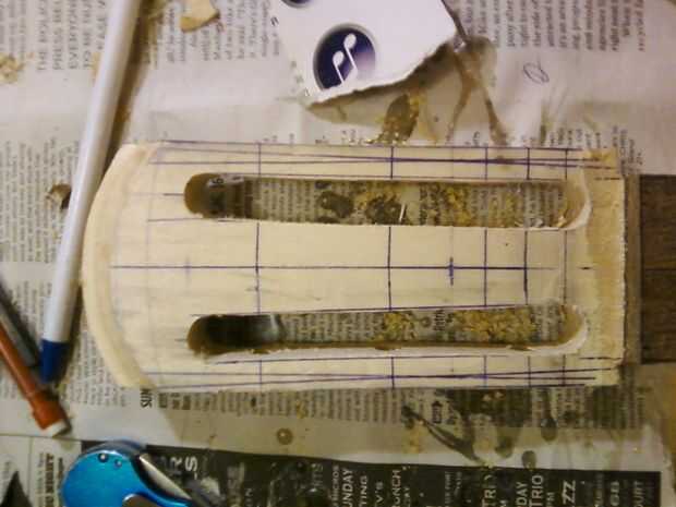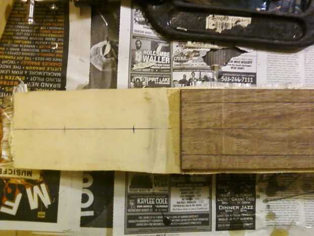 Sujete el cuello hasta el borde de la plantilla y cortar en 1/16" de la línea. Utilice una escofina para obtener derecho a la línea, manteniendo la cara cuadrada para el diapasón.