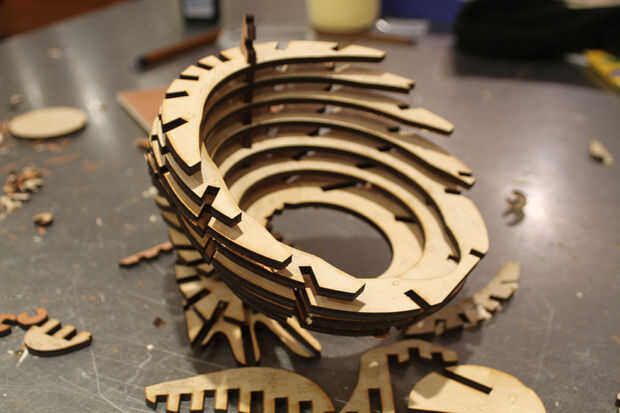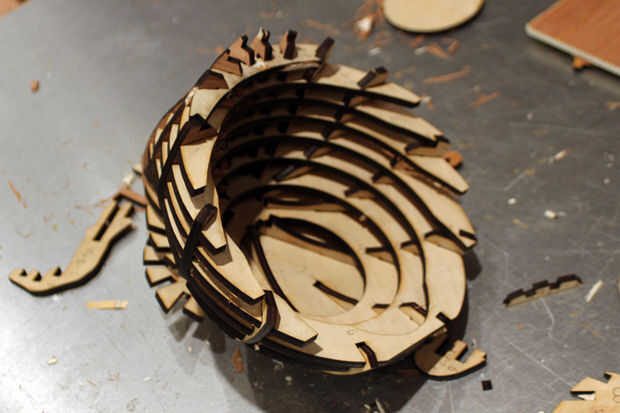 Una vez que todo el corte de piezas, era sólo cuestión de armar el tazón de fuente. Esto es mucho como los kits de esqueleto de dinosaurio de madera que estoy seguro que todos hemos jugado con los niños (y adultos). 123D etiquetas marca cada pieza para ti, así que era mucho menos de un frustrante jigsaw puzzle que se puede esperar; Sólo alineados cada ranura según número y empujaron juntos.