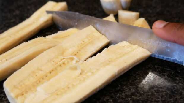profunda plátanos fritos, rellenos de Chocolate y cerezas, servido con helado.Paso 1: Lo que se necesita 3 plátanos verdes grandes (el más gordo y más verde mejor)Jarabe de chocolate (o chispas de chocolate, no lo he probado aunque este)1 taza de har