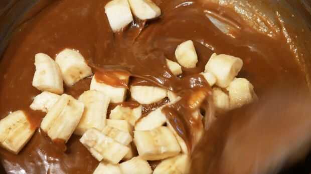 Calentar todos los ingredientes a fuego lento durante 15 a 20 minutos. Cortar los plátanos y agregar a la salsa de caramelo.
