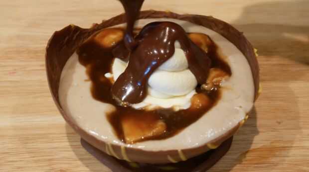 profunda plátanos fritos, rellenos de Chocolate y cerezas, servido con helado.Paso 1: Lo que se necesita 3 plátanos verdes grandes (el más gordo y más verde mejor)Jarabe de chocolate (o chispas de chocolate, no lo he probado aunque este)1 taza de har
