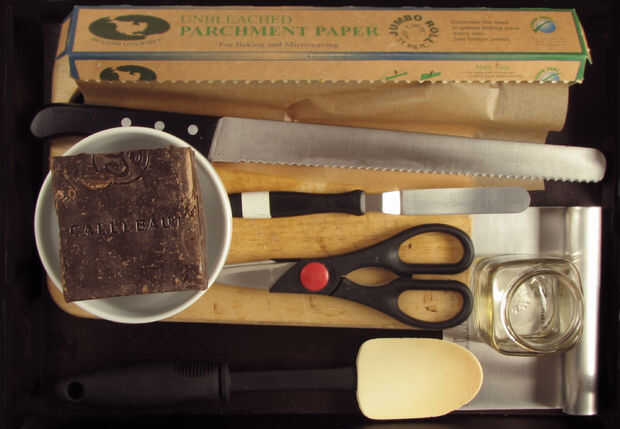 Todas tus herramientas deben ser muy limpio y seco. Los dos primeros pasos (que implican cortar y formar pergamino) se pueden hacer antes de tiempo, pero una vez que el chocolate es en genio, sólo tendrás un tiempo limitado para trabajar con él, por lo que es imprescindible que tus herramientas necesarias estarán a su alcance.