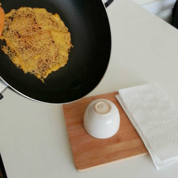 Estos pasos deben suceder bastante rápido, así que asegúrese de tener todo preparado antes de tiempo. Cuidadosamente mover el queso cocido, coloque en una pequeña taza o tazón de fuente que está usando como su molde. Tomar una toalla de papel doblada y presiónela sobre el queso en la parte superior del formulario. Mantenga en forma durante unos 10 segundos y luego retire la toalla de papel. Si se pega, cocinar otro un poco más. En este punto debe ser rígida y crujiente. Quitar el molde y pasar a la siguiente.