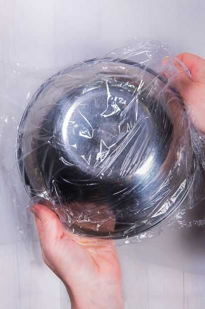 Envuelva el exterior del tazón de fuente en envoltura de plástico transparente.