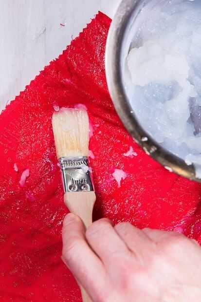 Pintar el interior de la tela con pasta de harina de maíz. El lado estampado de la tela será en el exterior.