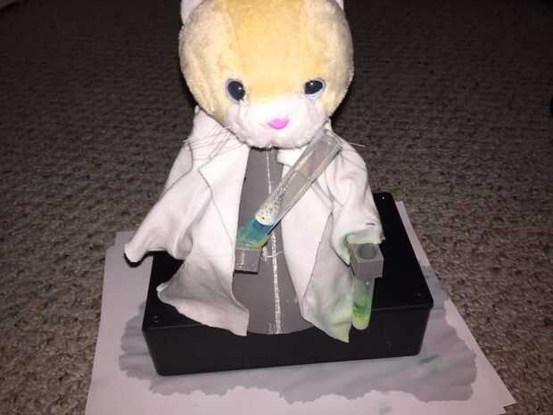 Cuando el gato cuenta está totalmente construido, podrá girar el regulador analógico (puede que desee hacer un agujero en el lado de la caja por lo que puede pegar, si desea cerrar la caja.) sin embargo ahora que desee para que el brazo del gato conectado el servo girará. Si lo desea, también puede elegir una mezcla segura de vinagre y bicarbonato de sodio (con colorante) para el gato cuenta mezclar cuando el brazo gira.