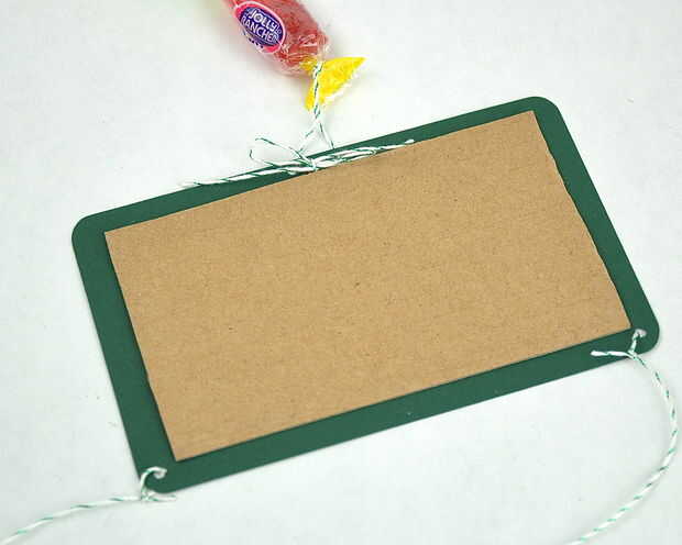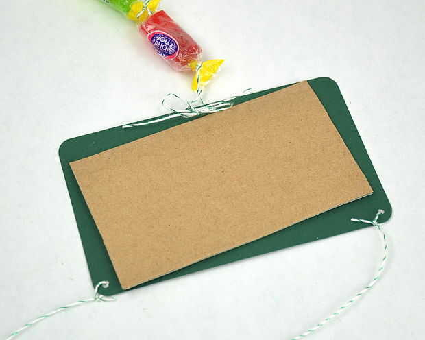 Cuando terminé casi con mi proyecto he añadido el cartón, pero usted puede Agregar ahora. Simplemente corte una pieza que es aproximadamente del tamaño de la pieza principal de 2.5 x 4.5 pulgadas. Sólo utiliza un palillo del pegamento y pega este derecho a la parte posterior de la muestra, asegurándose de no cubrir alguno de los agujeros exteriores. Antes de poner en el cartón, el signo de la papel no podía soportar el peso del caramelo y empezó a doblar, añadiendo el cartón impide suceda.