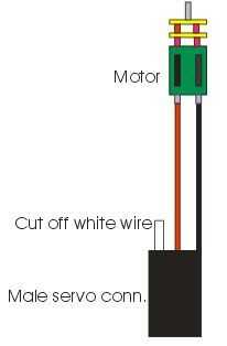 Para conectar el motor, otra vez usando una extensión de doble servo macho, corte uno de los extremos