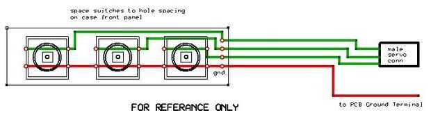 Un lado de cada interruptor está conectado con el conector apropiado en el encabezado macho PCB H1, mientras que el otro pasa al Terminal de tierra Terminal de conexión de potencia PCB.