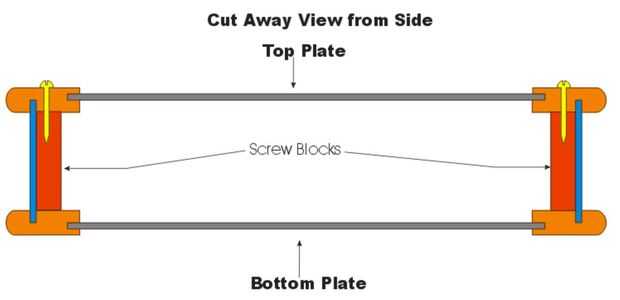 Ahora, dentro de en cada esquina, introduzca el vertical 1/2 X 1/2 X 2 pulgadas tornillo monturas.