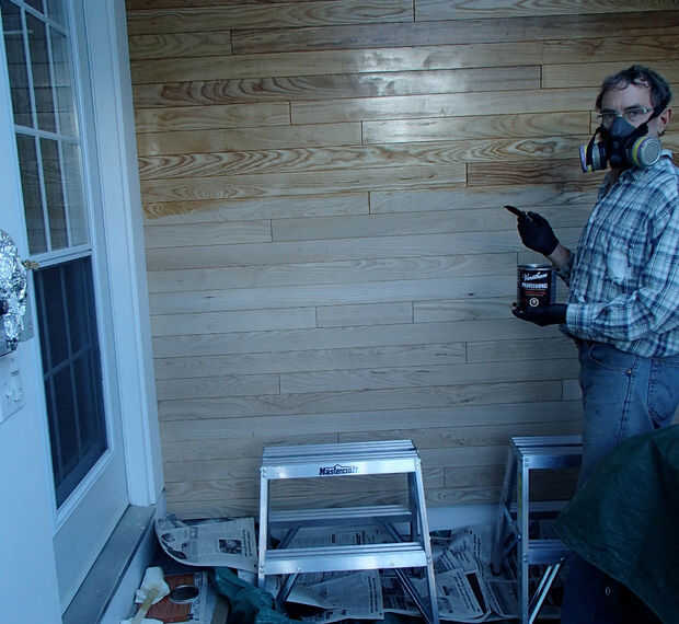 Si desea realmente cuentan con la belleza natural de la madera del grano, como lo hice, sé paciente y aplicar tantas capas de barniz claro como usted puede estar parado. (Poner en cinco, dado allí sería directa del sol sobre esta pared).