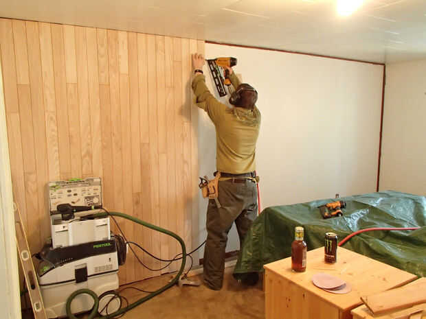Cuando se trabaja en el interior, fue genial tener acceso a lijadora orbital de los carpinteros grado profesional ("Festool") con su sistema de recolección de polvo integrado extraordinario.