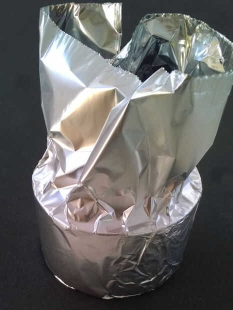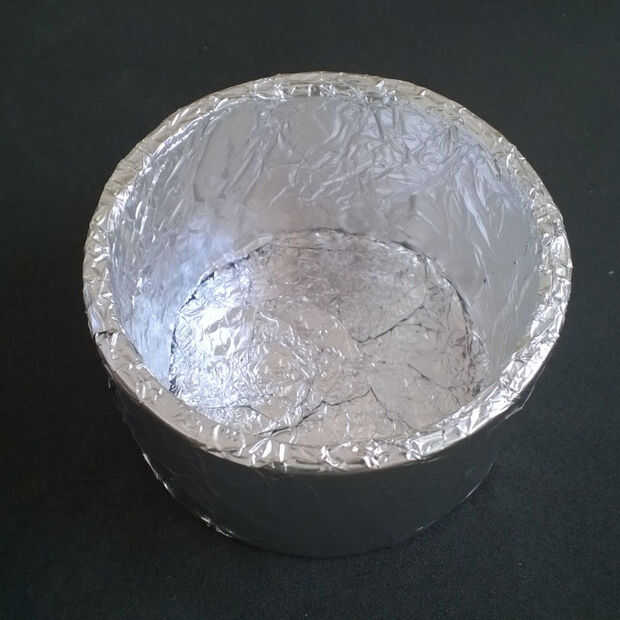 Para una variación, cubrí el tubo de papel de aluminio. Comencé a pensar que quizás encierra una vela en la cartulina no era la mejor idea para hacerla menos inflamables (y más brillante) cubrió el tubo en el papel y hace una hoja base para atrapar cualquier cera derretida. Ahora, por supuesto, yo usaría una lata.