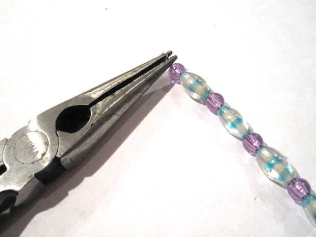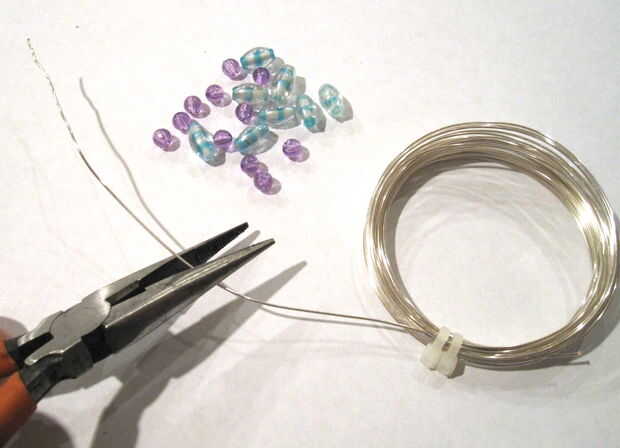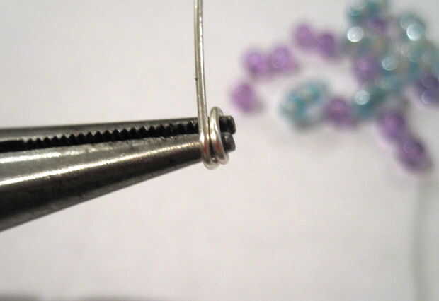 Cortar unas 6 pulgadas del alambre. El extremo del alambre alrededor de la nariz de los alicates para formar una bonita espiral de la bobina. Hasta que quedan unos 3/4 de pulgada de alambre y al final alrededor de los alicates de la bobina del hilo de rosca los abalorios en el alambre.