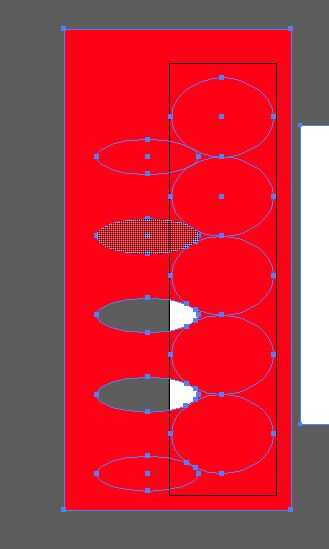 Empecé con una serie de círculos espaciados uniformemente verticalmente y toca levemente. Se ha añadido elipses en el lado izquierdo las grietas entre los círculos. Estos seleccionados elipses luego se copian en una fila a la derecha.