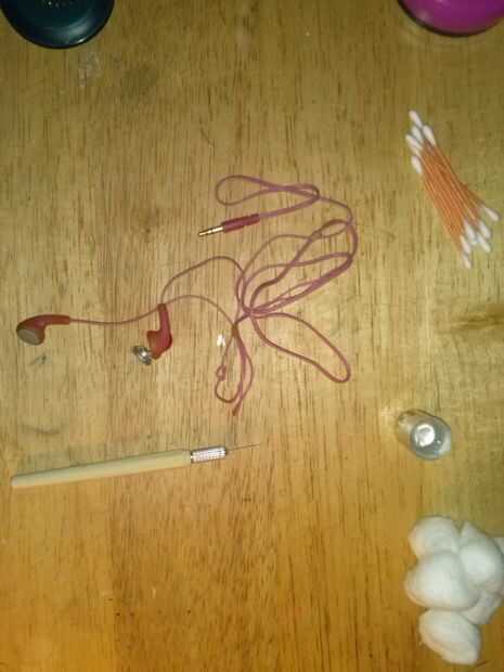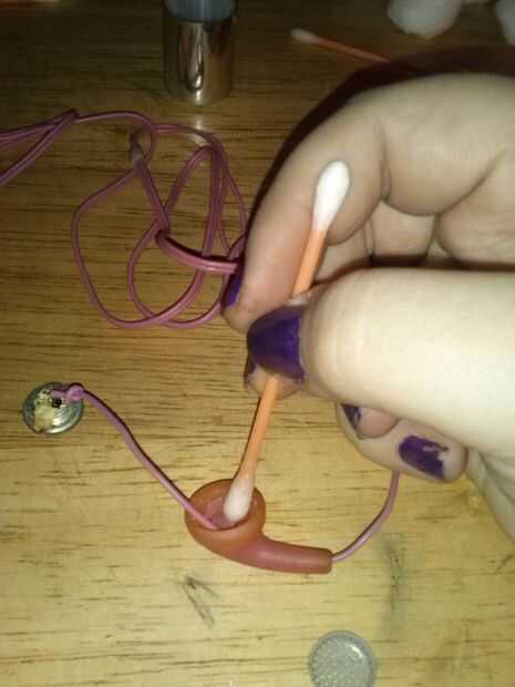 coger un cuchillo de la manía y saltar todo el centro de la almohadilla y el uso de una bola de algodón o q-consejos y algunos alcohol para fricciones y limpie la cera... ewww