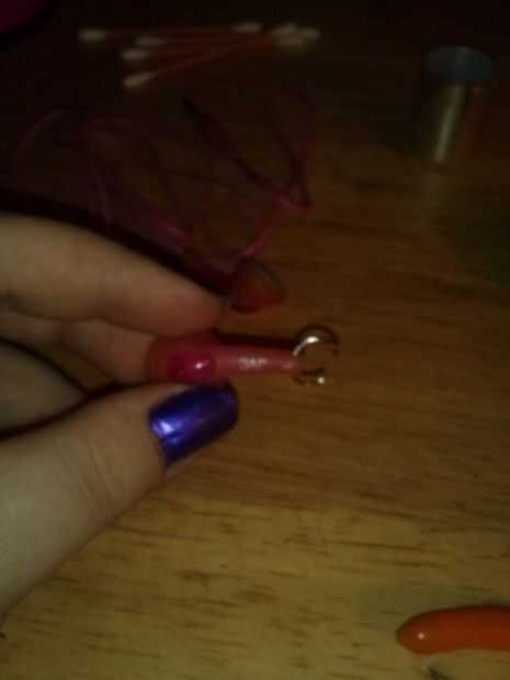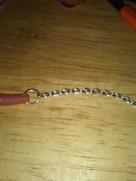 utilizando pinzas abra un lazo e introducir en el agujero que a hecho y añade una pequeña cadena de la longitud de su elección