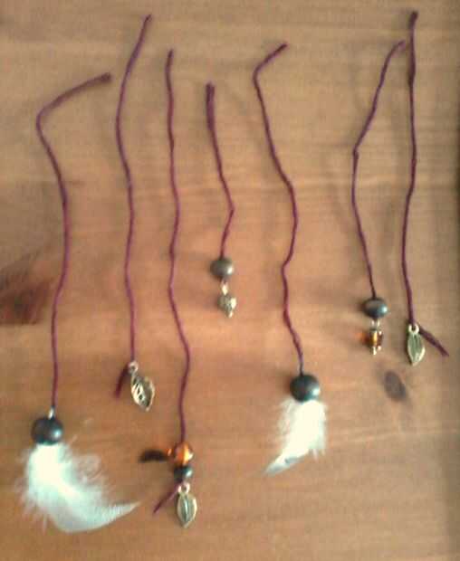1. Cortar varias longitudes de cadena y lazo/pegamento en sus encantos y los granos.