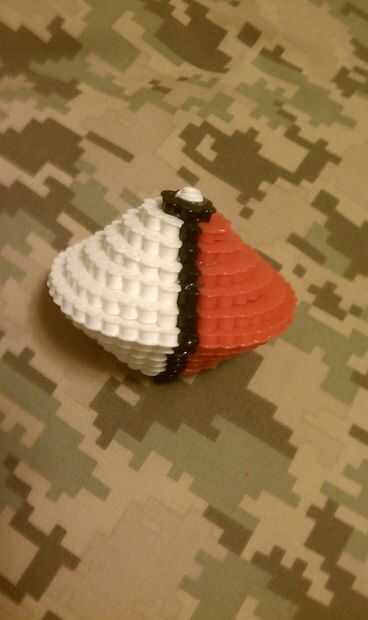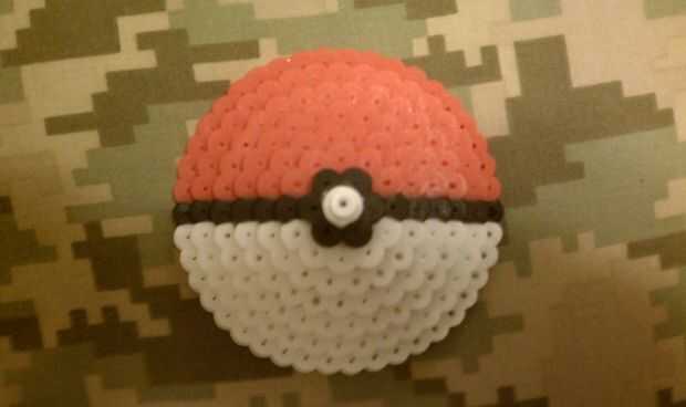 Ahora, vas a querer conectar la pistola de pegamento caliente. Configurar las piezas en orden para no pegar la pieza equivocada en primera. Comenzar con la pieza media y empezar a trabajar en un lado de la Pokeball. Tenía mi derretidos lados hacia fuera, pero que lo tenga la otra forma si lo desea. Coloque una pequeña tira de pegamento, 1 grano de ancho, alrededor adentro frontera de cada anillo y uso el color negro de cada pieza para alinear con la última, asegurando su pokeball se verá adecuada. Al llegar al final de la primera mitad, utilizar el círculo negro con el grano blanco solo, por lo que parece el botón pokeball.