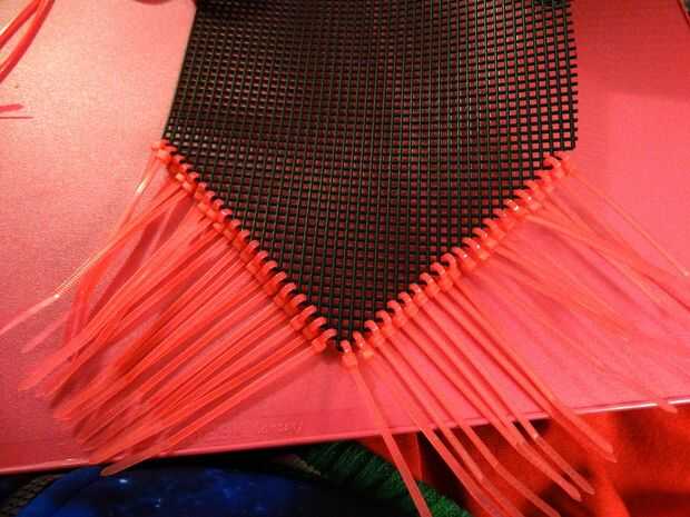 Esta bola es de abrazaderas de plástico (zap correas) y tiene una bonita coloración matemática.Se necesita:60 lazos pequeños zip (correas, ataduras de cables plásticas de zap). Ataduras de cremallera grande son más difíciles de hackear para este pro