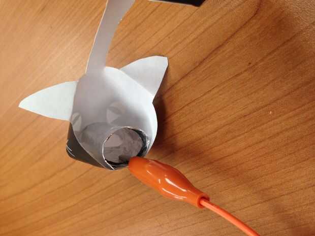Ahora necesita unir los títeres a la Makey Makey con los clips de cocodrilo en el juego. Uno de los extremos de la pinza debe estar conectado al anillo de papel de aluminio dentro de la marioneta y el otro lado debe fijarse al tablero Makey Makey en el lugar adecuado. Si usted planea usar la historia muestra que hemos creado, usted tendrá que conectar los cables en el siguiente orden: