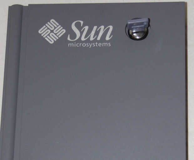 Me he mantenido en la puerta de entrada a la biblioteca de cintas; tiene una cerradura de llave y Sun Microsystems sobre ella! Las tres formas brillantes son filtros de polvo de aluminio. Sin duda podrá encontrar un uso para ellos en algún momento. El ventilador grande vino de debajo de las unidades de cinta.