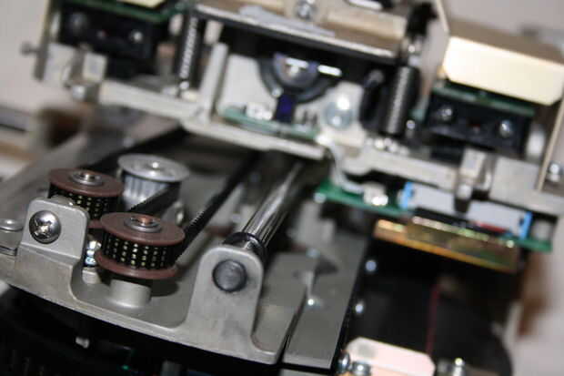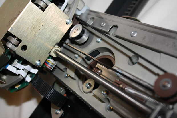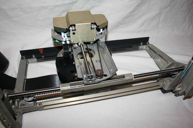 El sistema de transmisión vertical es muy simplista, dos correas levantan la Asamblea up & down. Dos pinzas Mantenga las correas a la estructura, y una barra corre entre las dos partes unidad de transferencia entre los dos. La cosa obvia a utilizar esto para es un CNC, pero no me gusta obvio. Tengo algo en mente, pero necesito trabajar en la idea de algunos más.