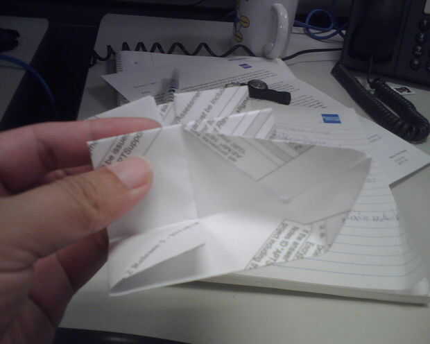 Saque una esquina aleta y pliegue en el borde interno incremente