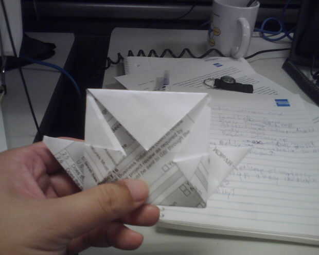 Así que mirar dentro de uno de los cascos de su barco y habrá una de esas esquinas dobladas a la mitad en el paso 1.