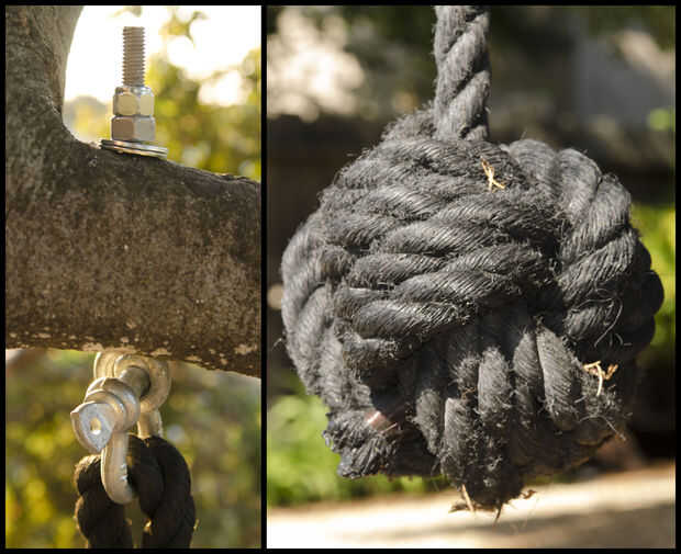 Un perno de ojo mantendrá su cuerda de frotar la corteza del árbol o usa a través de. También hará el swing mucho más suave.