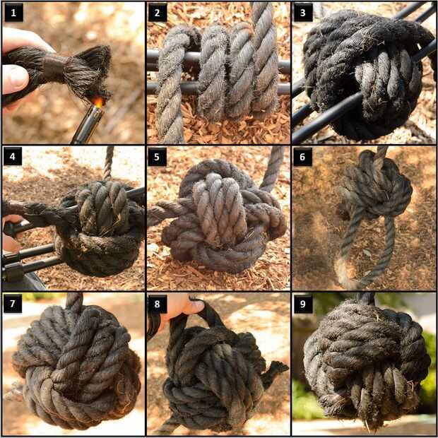 La ejecución es más difícil, sobre todo con una gran cuerda. Las imágenes de arriba muestran mi método.