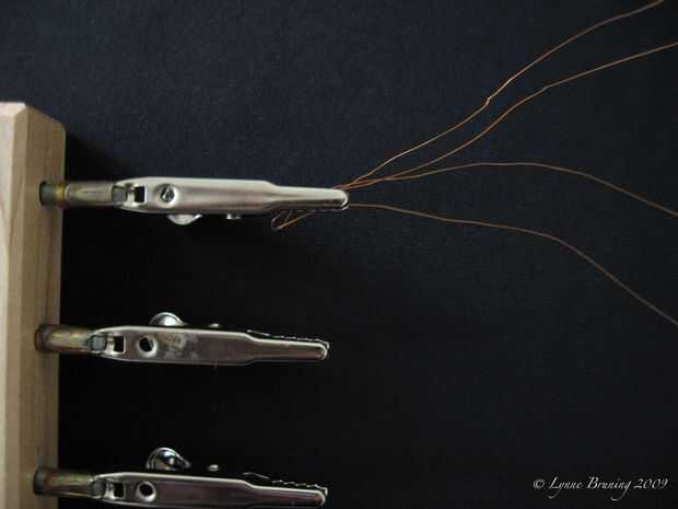 Coloque todos los cables de cuatro en una abrazadera. El alambre es demasiado suave a tuerza en el tradicional método de torsión de la franja, que es un cable por la pinza.